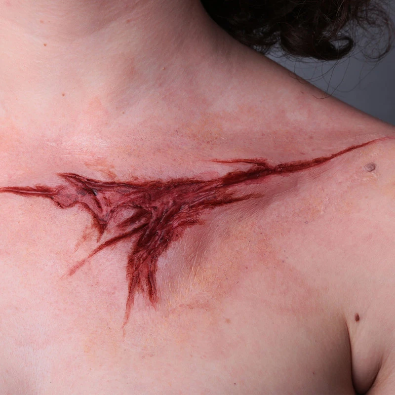 3.Se si vuole applicare il sangue all’interno della ferita, si consiglia il sangue della P.P.I. Fresh a base d’alcool per eseguire una ferita appena avvenuta, dark se si vuole una ferita avvenuta prima.