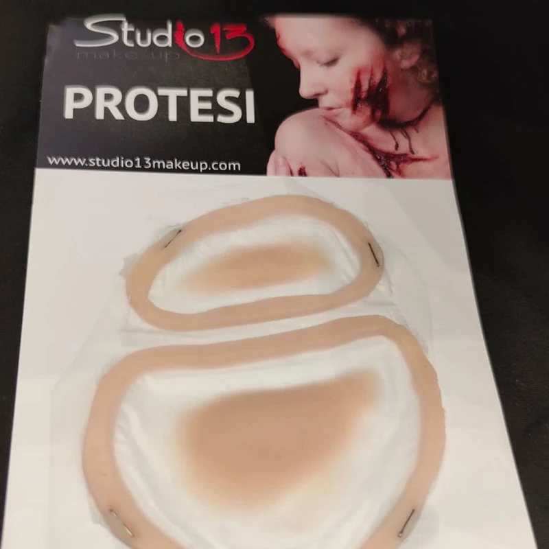 Protesi facciale fatta a mano di un occhio gonfio destro.