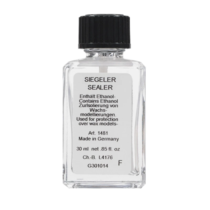 Sealier is a clear synthetic liquid used for protection over latex, foam, wax models, putty noses, chins and other prosthetic pieces. Use a brush to apply the preparation thinly over wax models, and for a distance of 1 cm beyond the model onto the bordering skin. Allow to dry, and then apply powder. As needed, Kryolan Sealer can be diluted with Kryolan Spirit Gum Remover or alcohol.