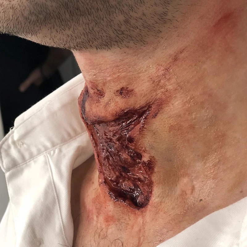 3. Se si vuole applicare il sangue all’interno della ferita, si consiglia il sangue della P.P.I. Fresh a base d’alcool per eseguire una ferita appena avvenuta, dark se si vuole una ferita avvenuta prima.
